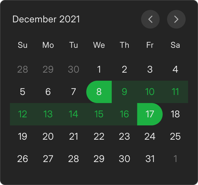 Review intervals from a specific day or period. Note that you can also group all the intervals by day, week, or month by clicking Group by on the right side of the search box in the top left corner.