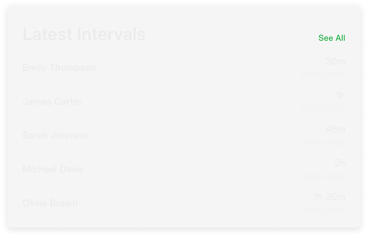 This section showcases all the latest time intervals. By clicking See All, you can access every recorded interval within a specified time range, offering a deeper dive into team activity.