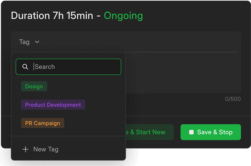 To keep time intervals organized and provide clarity about what each interval was devoted to, timefixer uses tags. Tags represent projects or activities that users assign to their intervals, making it easy to understand how time is spent.