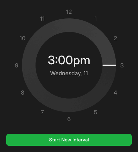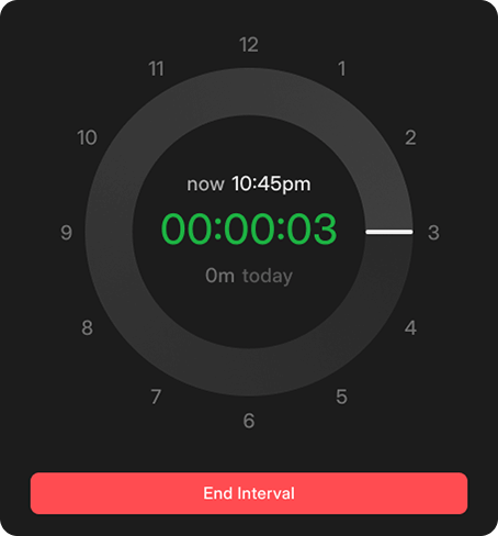 Click Start New Interval to begin with. Your timer will start running, and a color-coded interval will appear, indicating that tracking is active (Good job!).
